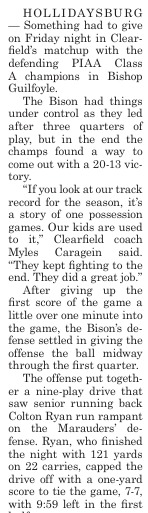 20-13 Loss to Bishop Guilfoyle, 10-17-25 ~